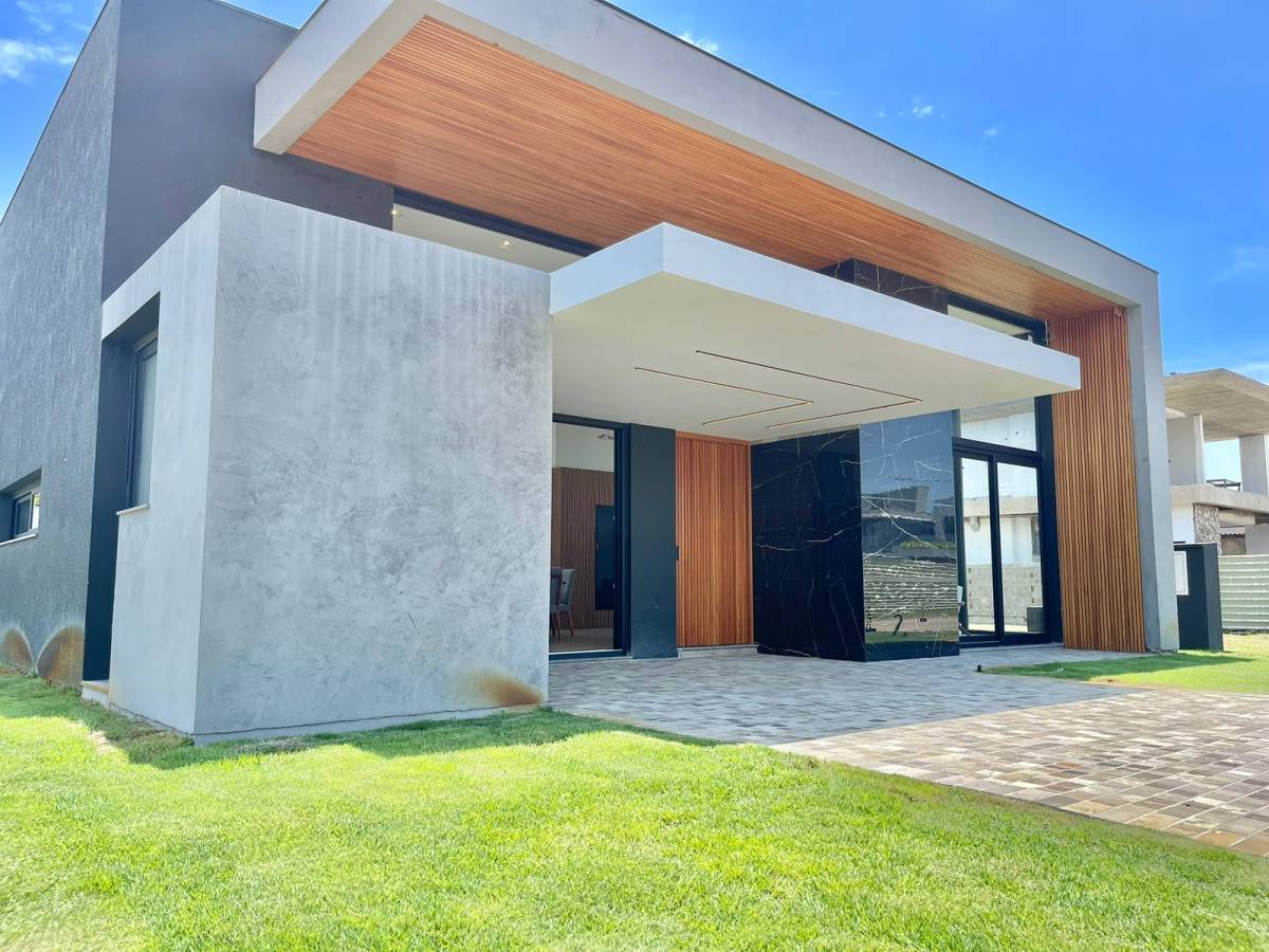 Casa no Condomínio Sense. Belíssima casa com arquitetura moderna com 4 suítes, lavabo, living integrado em 3 ambientes com lareira e pé direito alto, cozinha americana com churrasqueira, ampla área de serviço, despensa, piscina, abrigo para 02 carros. Casa com alto padrão construtivo, esquadrias em PVC e automatizadas, piso porcelanato, porcelanas e metais classe “AAA”, deck, água quente e jardim com irrigação automática e iluminação. Xangri-lá/Casa em condomínio/Condomínio Sense.